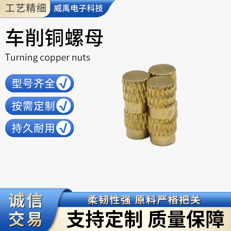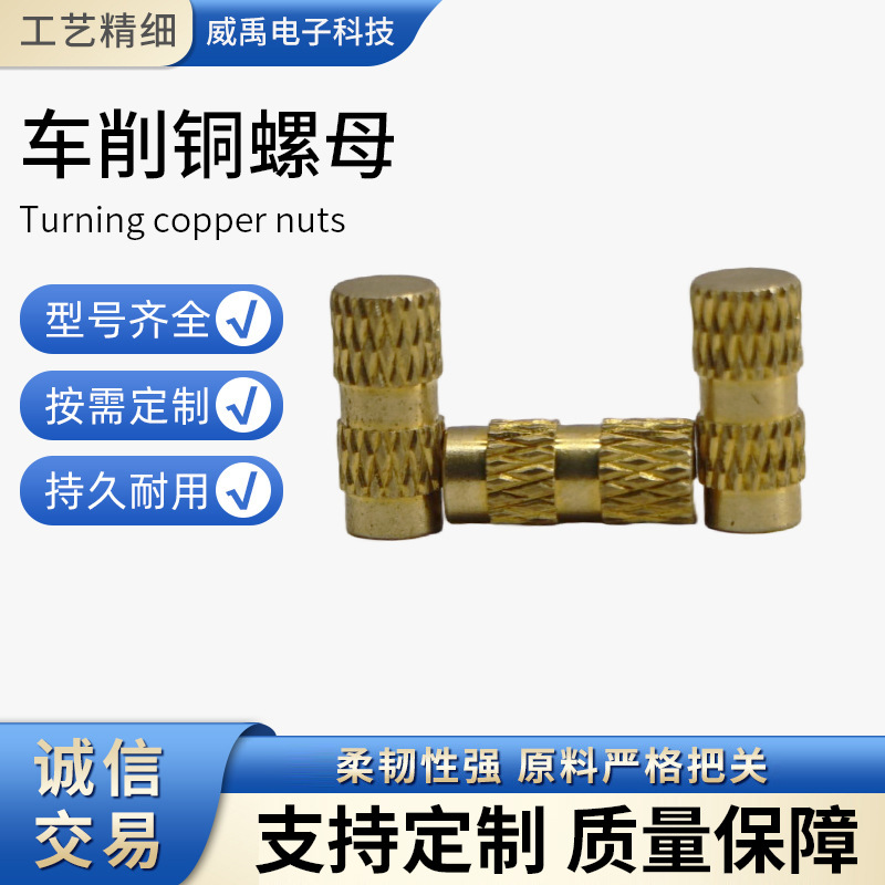 车削铜螺母定制通孔注塑滚花螺帽铜花螺母直网纹铜螺母注塑五金件