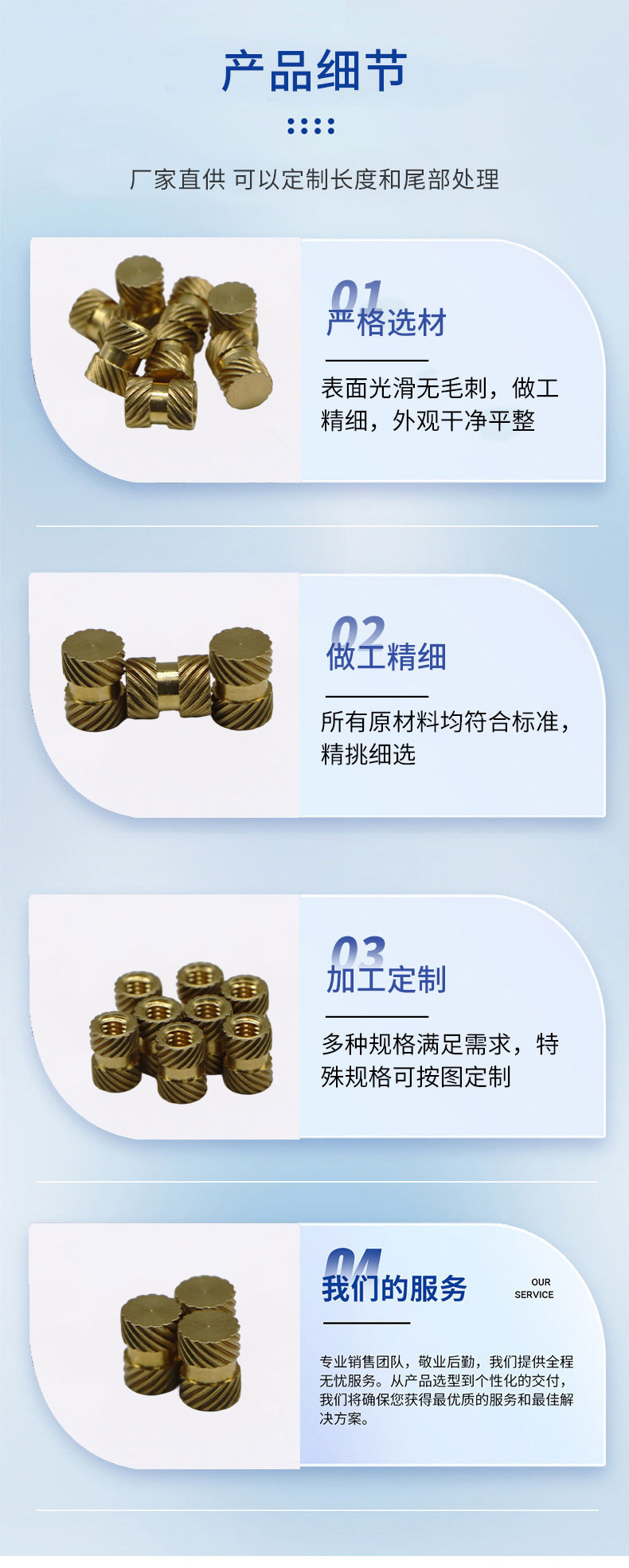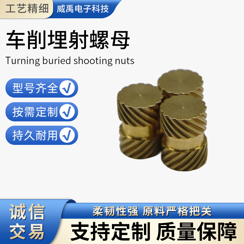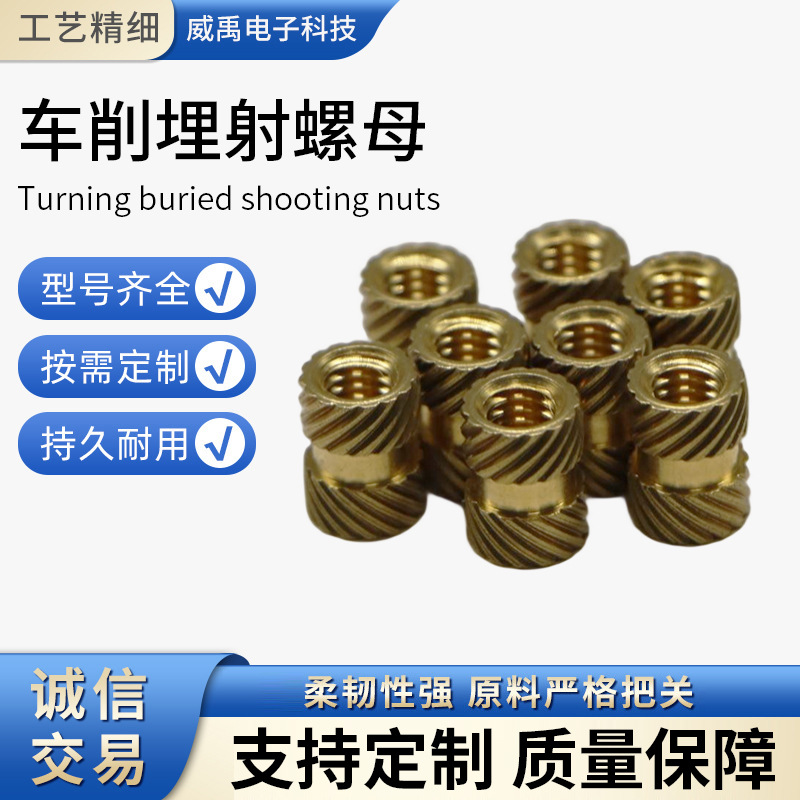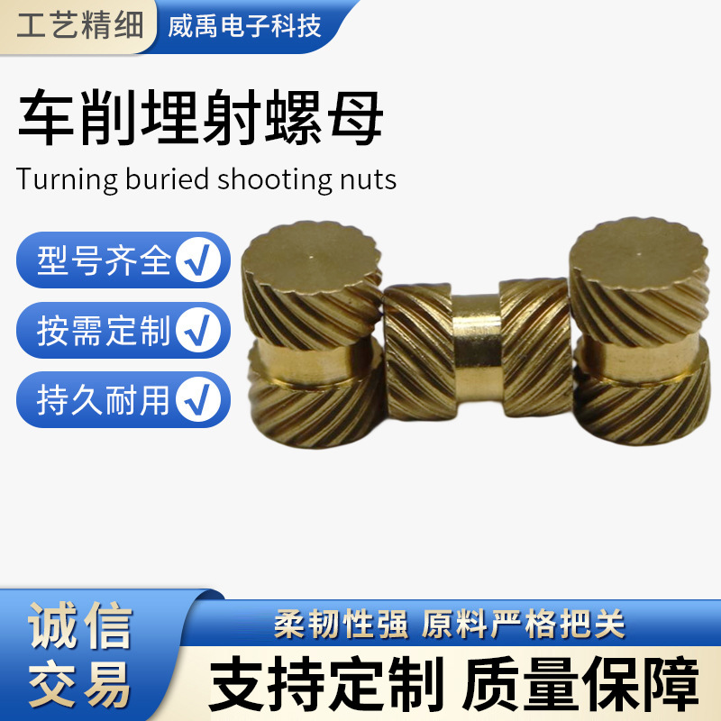 车削埋射螺母定制滚花铜螺母通孔热压非标斜纹螺母柱预埋螺帽厂家