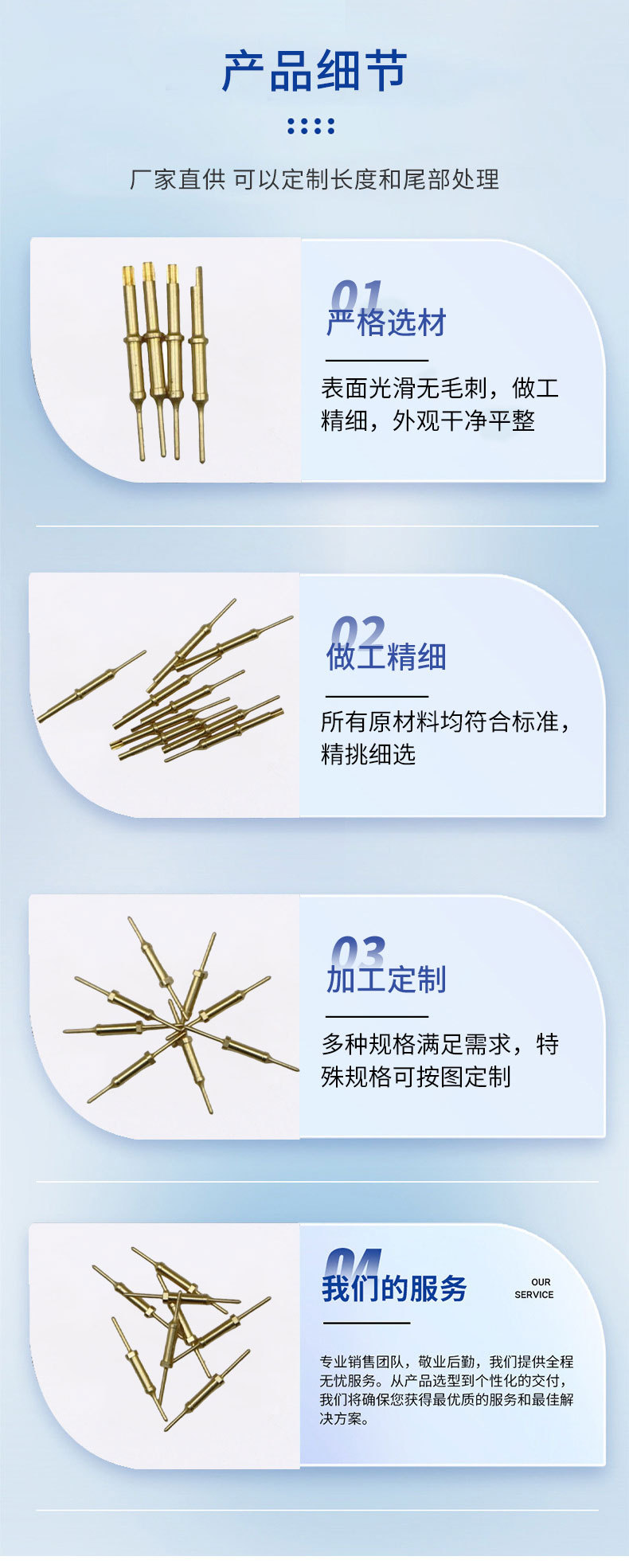 数控车削铜针接线端子电子连接器定制防水pin针镀金公母插针插孔