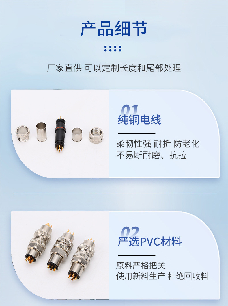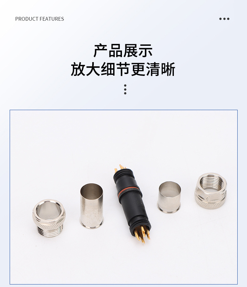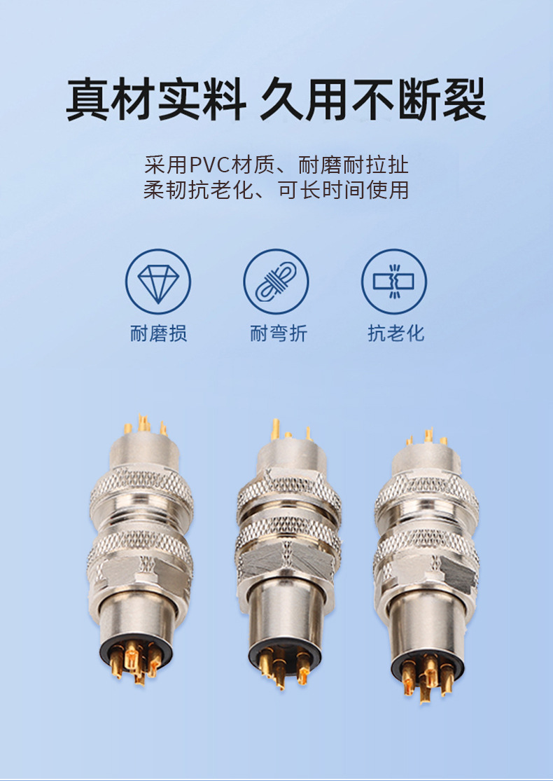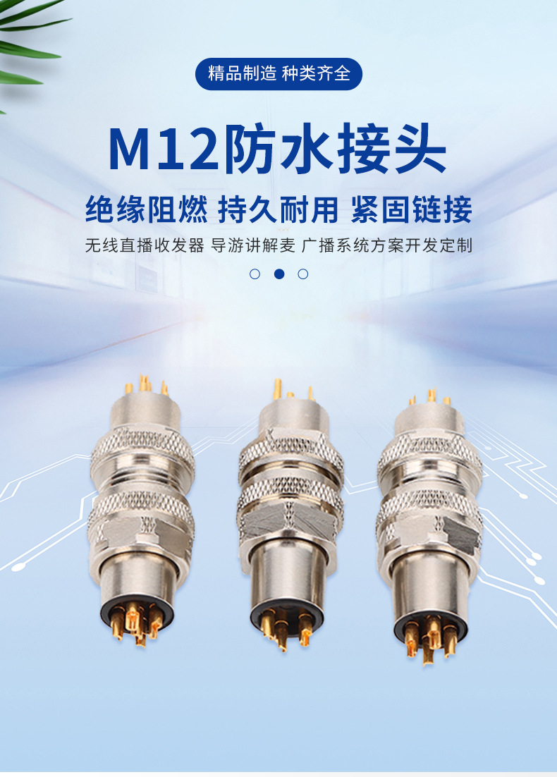 M12航空连接器防水多芯可选自动化设备通信连接器螺纹防水插头