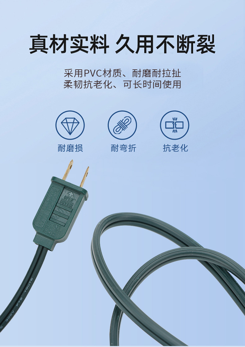 5A圣诞树延长线 7A开关两插电源插头线8A美标电源线厂家现货
